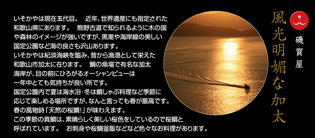 創業明治三十年 美しさの原点 天然鯛味付海苔 有明・初摘海苔 逸品を贈る 海苔は健康食品 風光明媚な加太